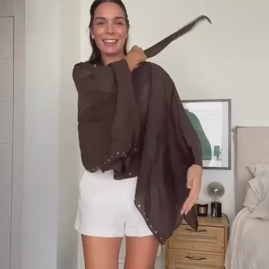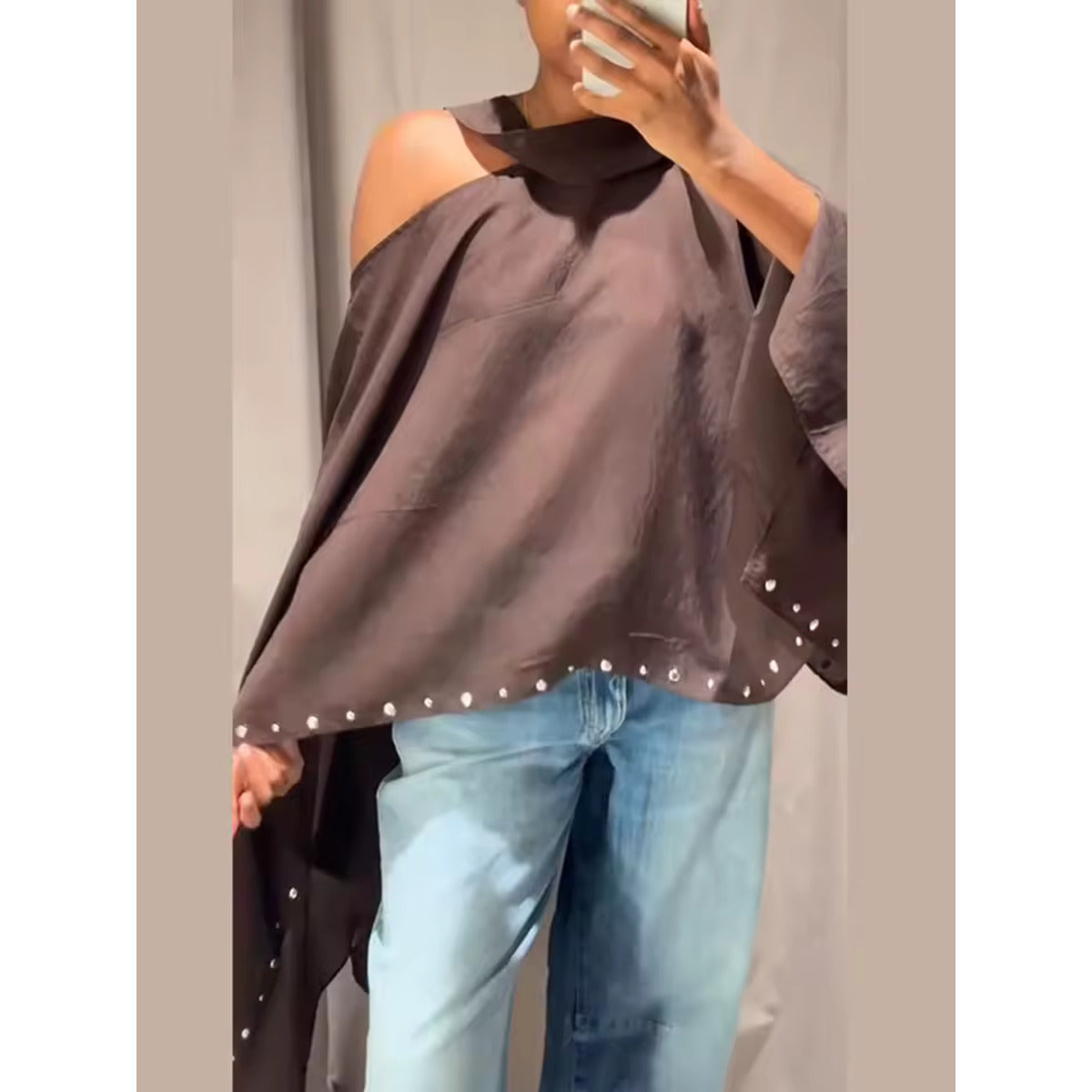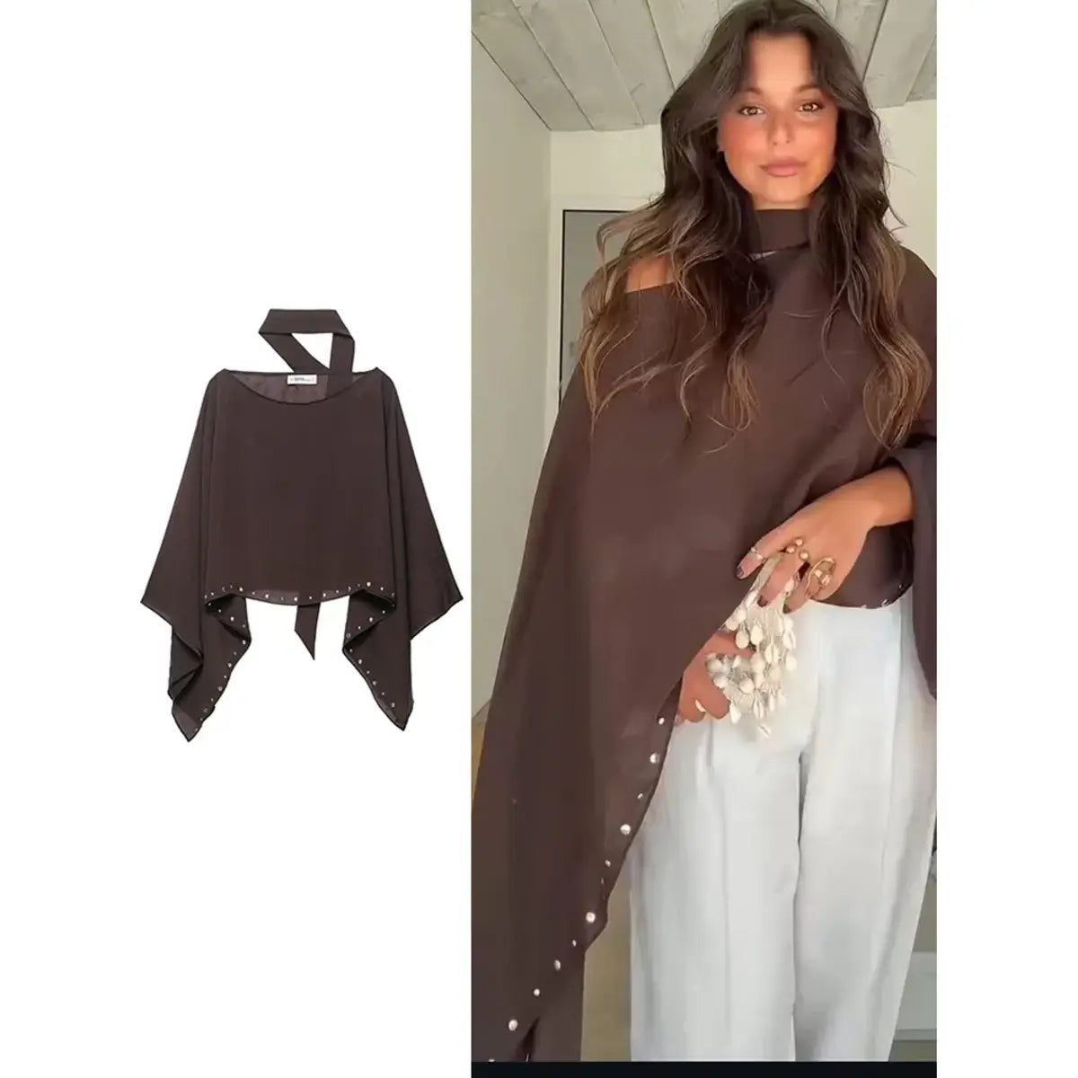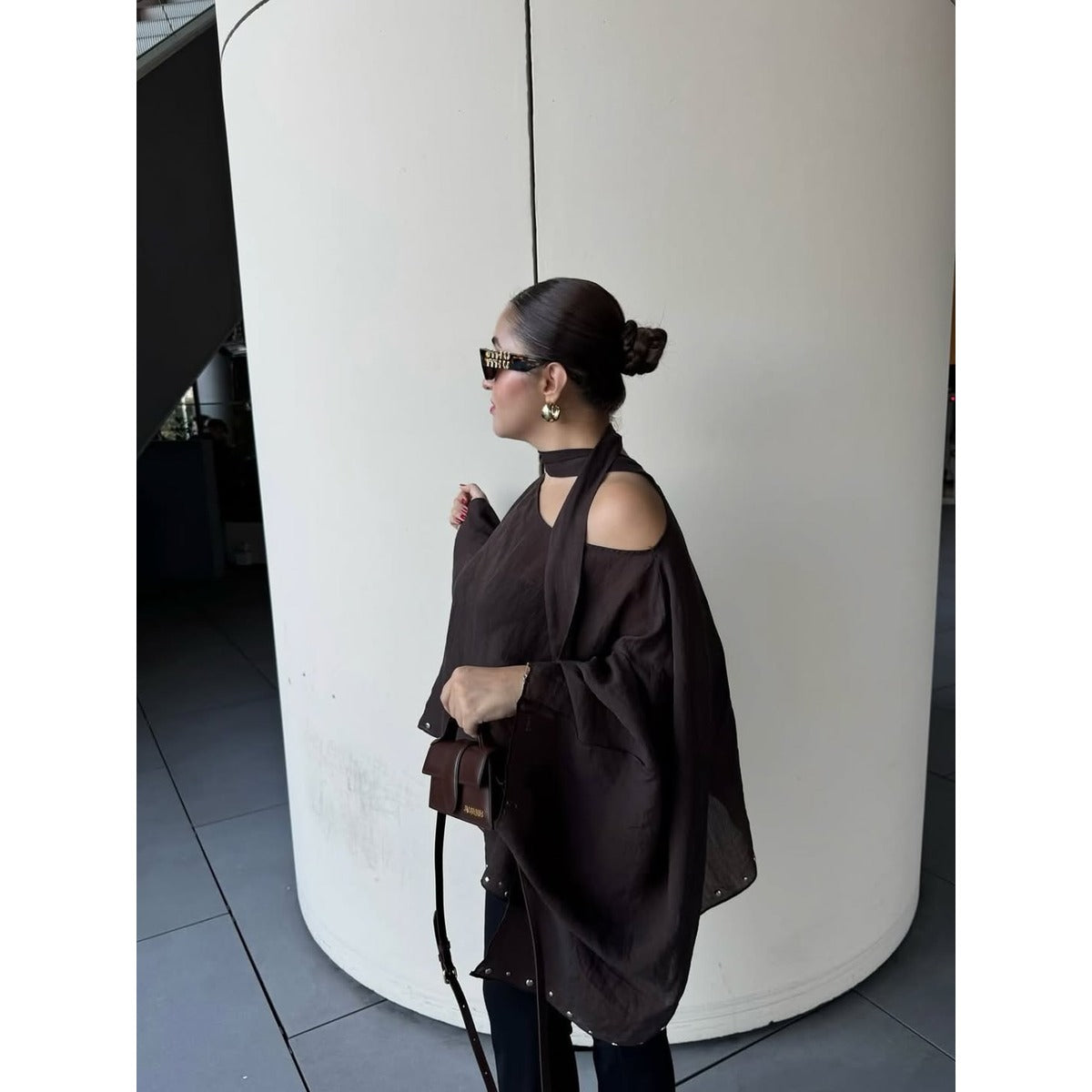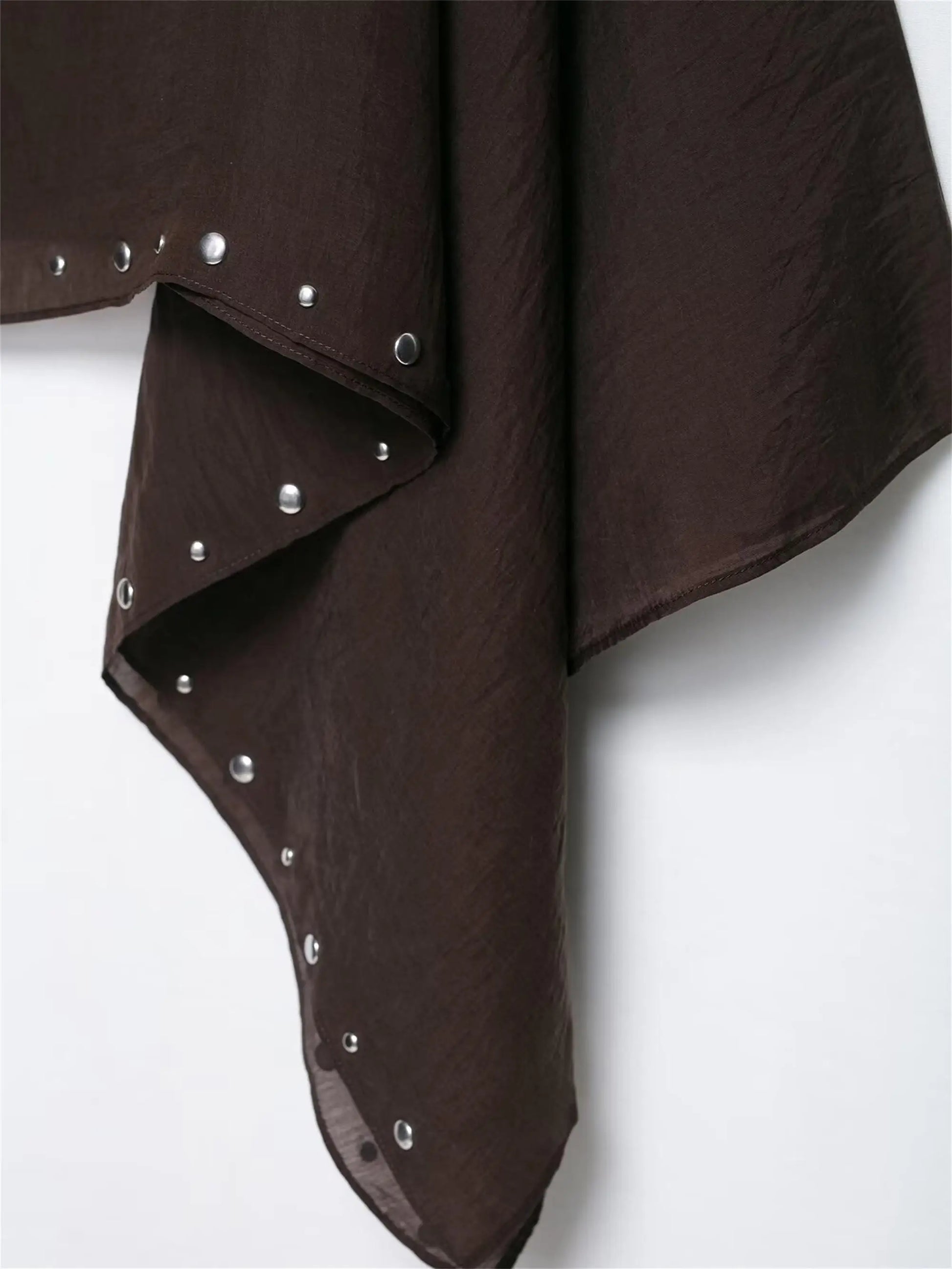This hot streetwear chic women's cloak combines modern style with comfort for a versatile summer outerwear option. With a solid rivet design and an open neck scarf collar, it adds a trendy edge to any casual outfit. The long sleeves and loose fit provide effortless layering without compromising breathability, making it ideal for warmer months.