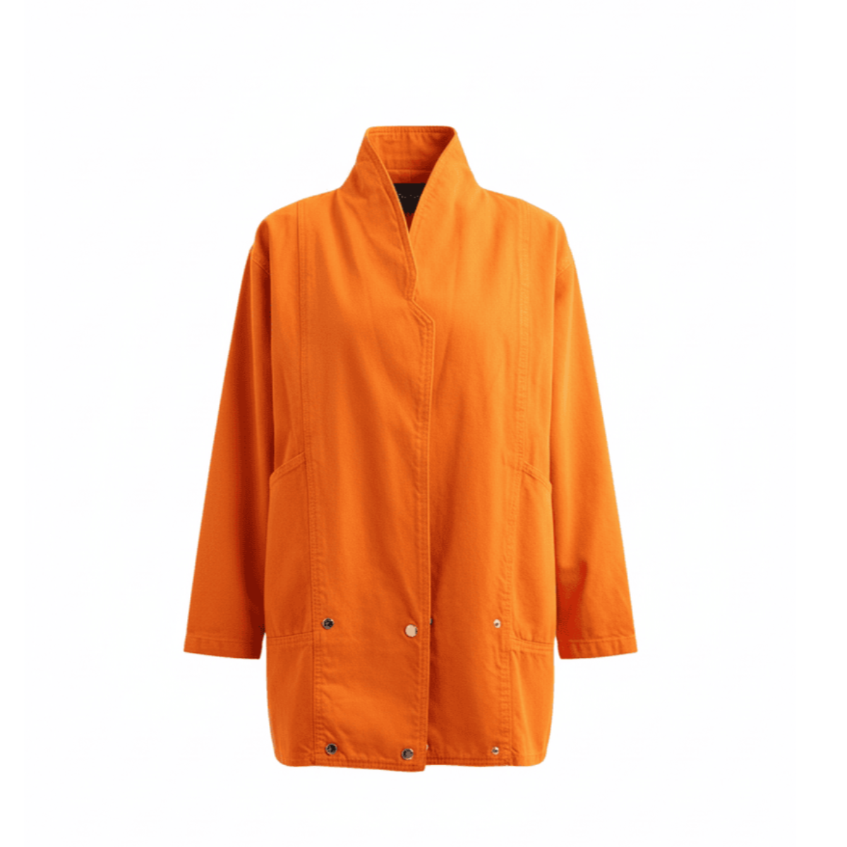 This orange denim jacket features a classic collar and button closure. With a classic collar and button closure, this jacket offers a casual style that is perfect for everyday wear. Whether you're dressing up or dressing down, this jacket is a must-have for any fashion-forward individual.