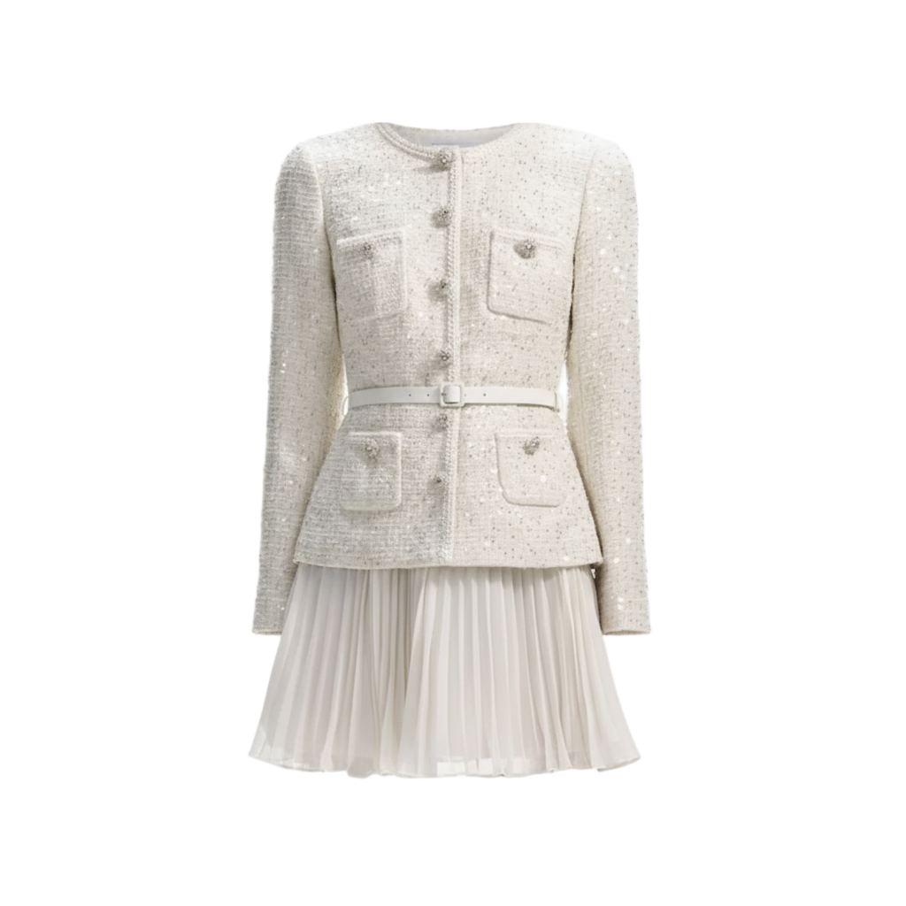 Elevate your style with our Sarafina Mini Dress. Designed with luxurious sequin chiffon and featuring a belt, this dress is perfect for a sophisticated and upscale look. Made for any occasions, the single-breasted design and pleated details will have heads turning at any party.